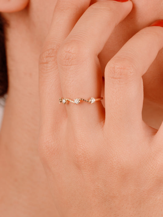 Curved Diamond Band Ring: Gold Wavy Wedding Band, Eternity Curved Promise Ring for Her, Luxury Jewelry