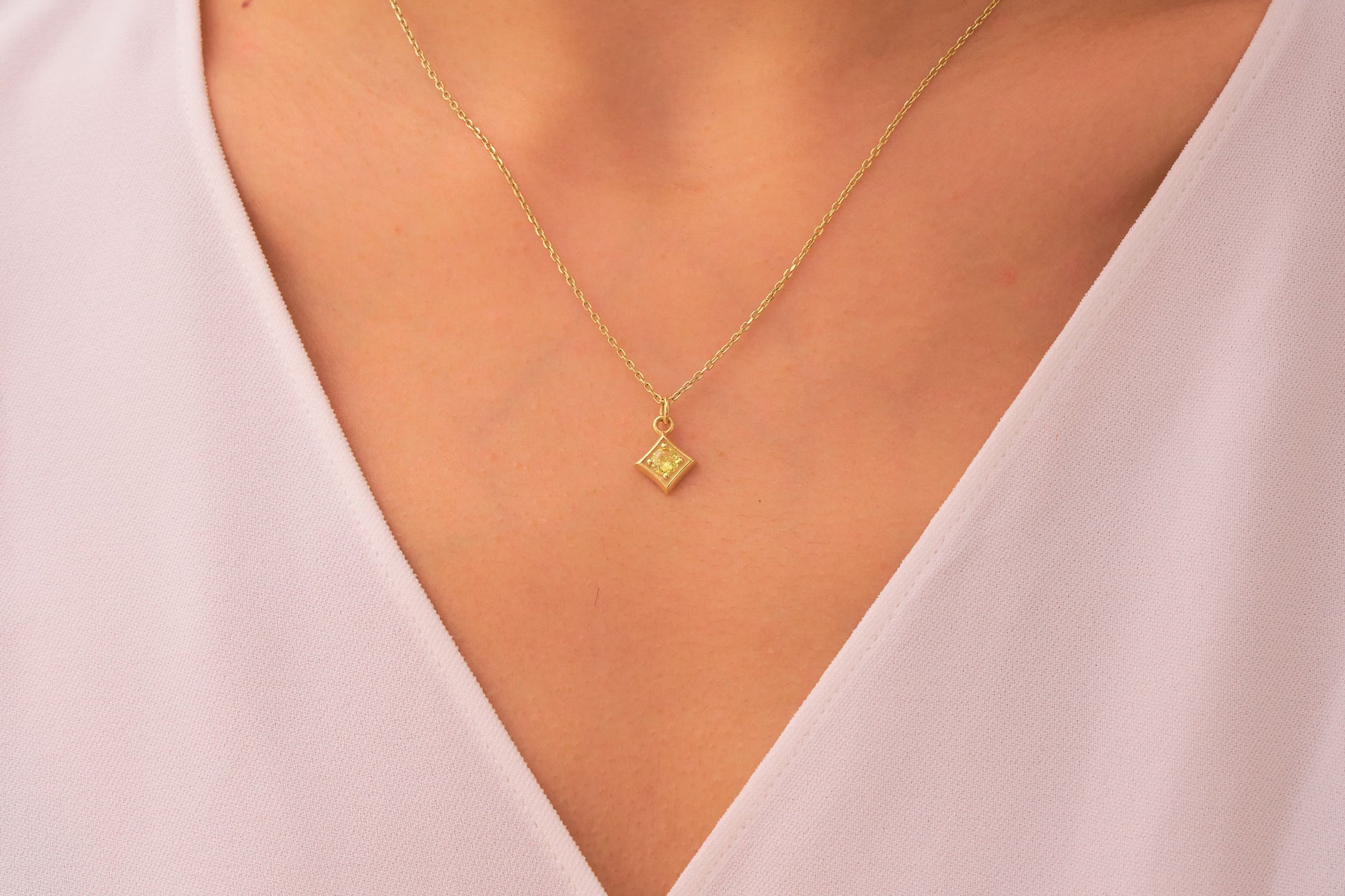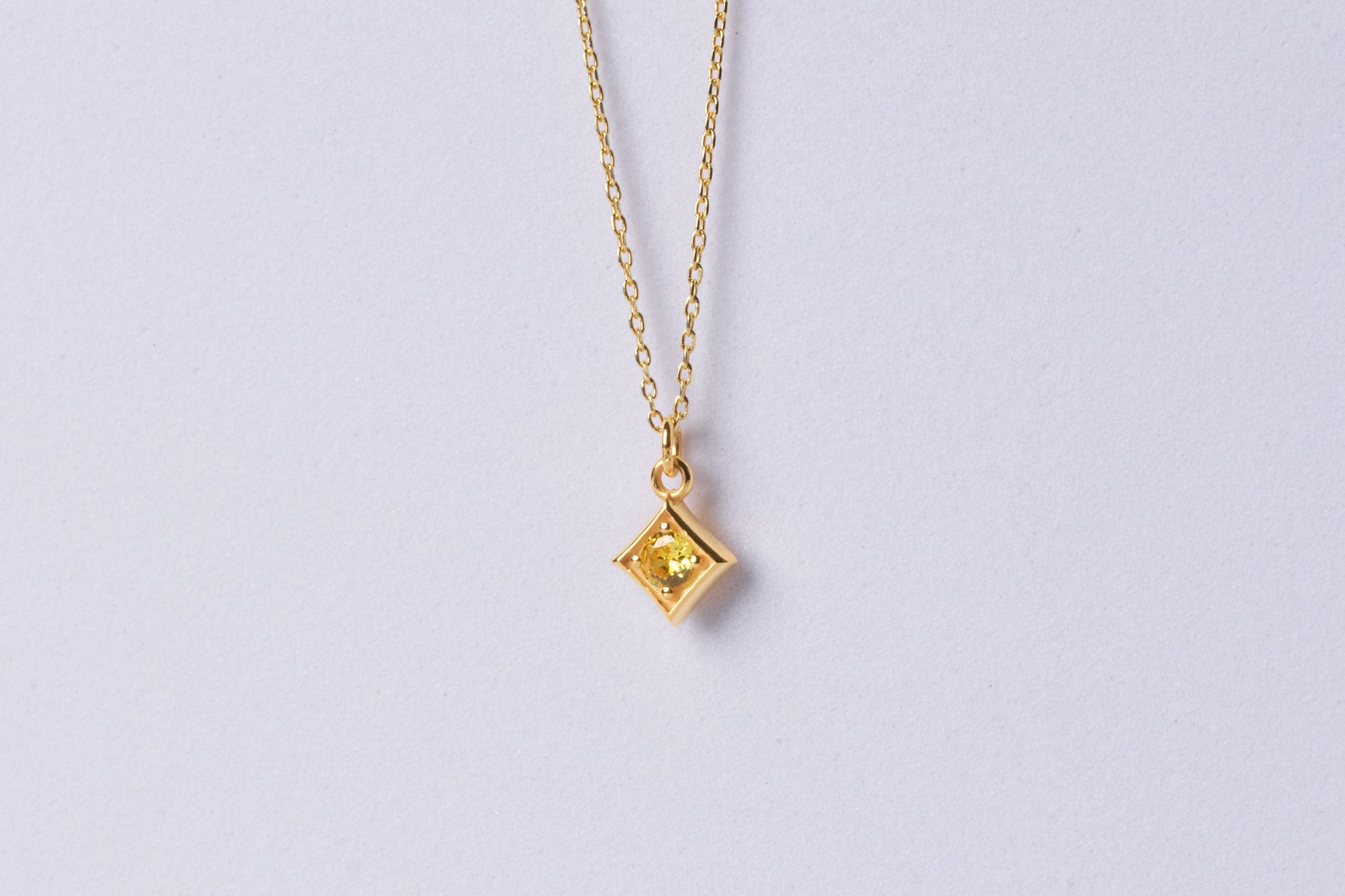 The citrine gemstone is renowned for its associations with success, creativity, and personal power, while the simple, delicate design makes this necklace versatile for everyday wear. Whether you choose solid gold for a luxurious feel or sterling silver for a classic look, this necklace offers timeless appeal and a personal touch to complement any outfit.