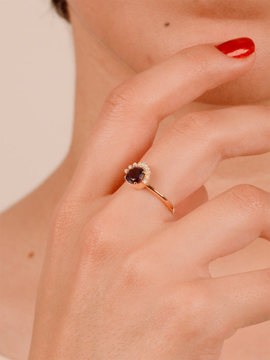 Baguette Birthstone Ring:Amethyst Solid Gold Half Eternity Band