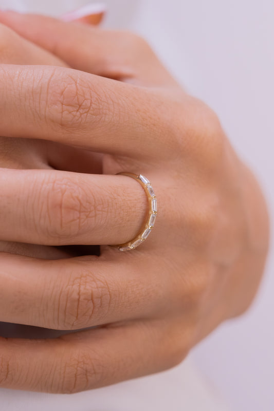 Baguette Diamond Ring: Dainty Diamond Engagement Band Ring, Half Eternity Wedding Band for Her