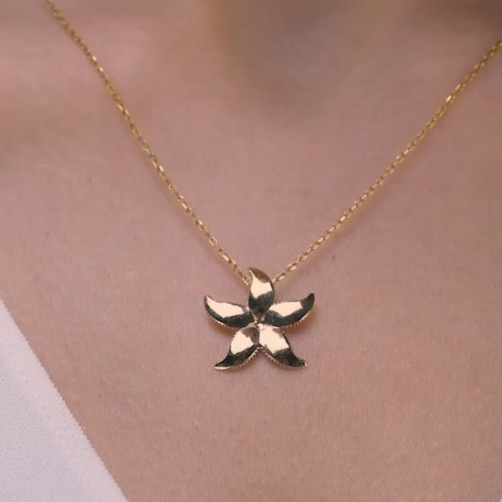 14k Gold Starfish Necklace | Gleaming Sea Star Ocean & Marine Jewelry