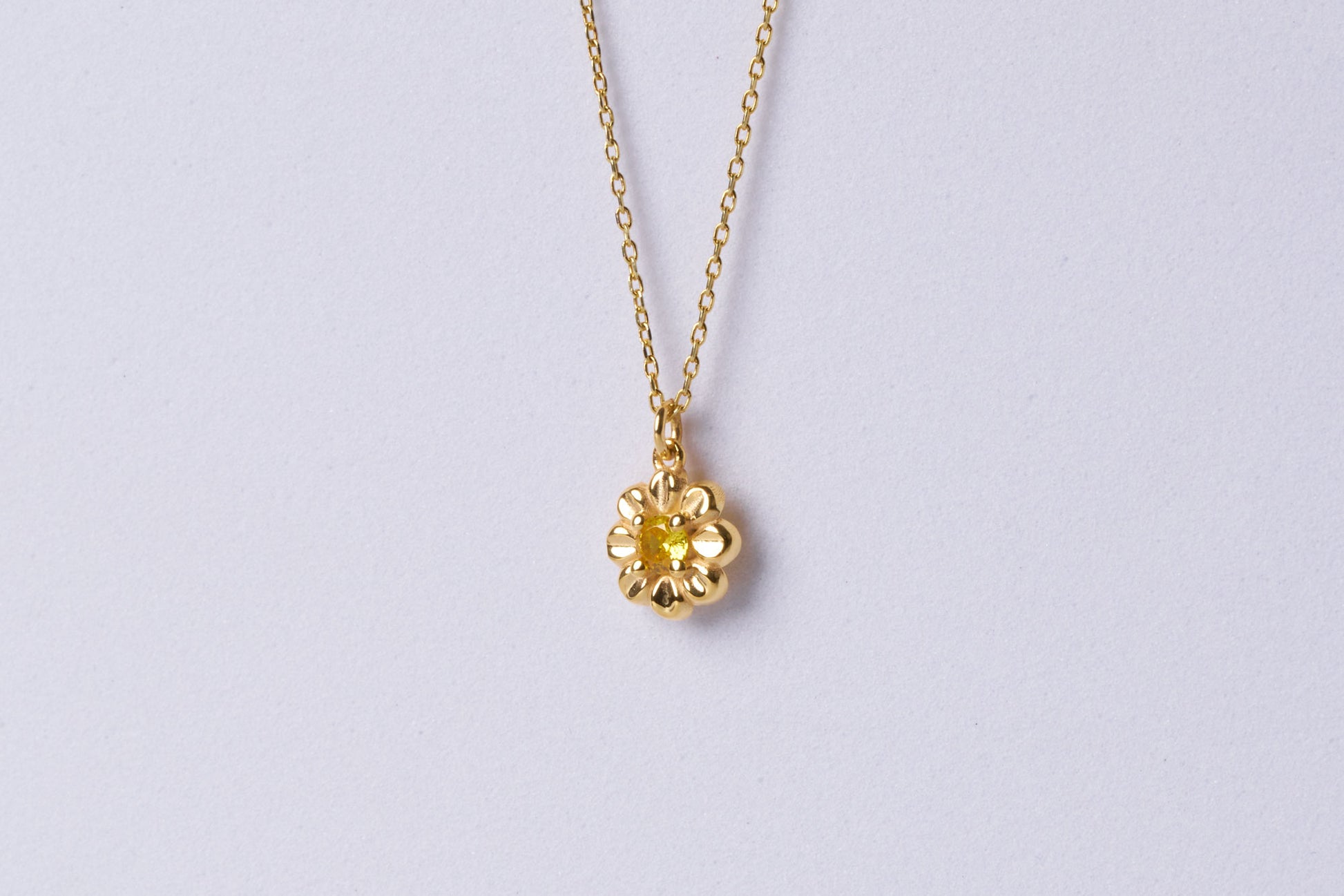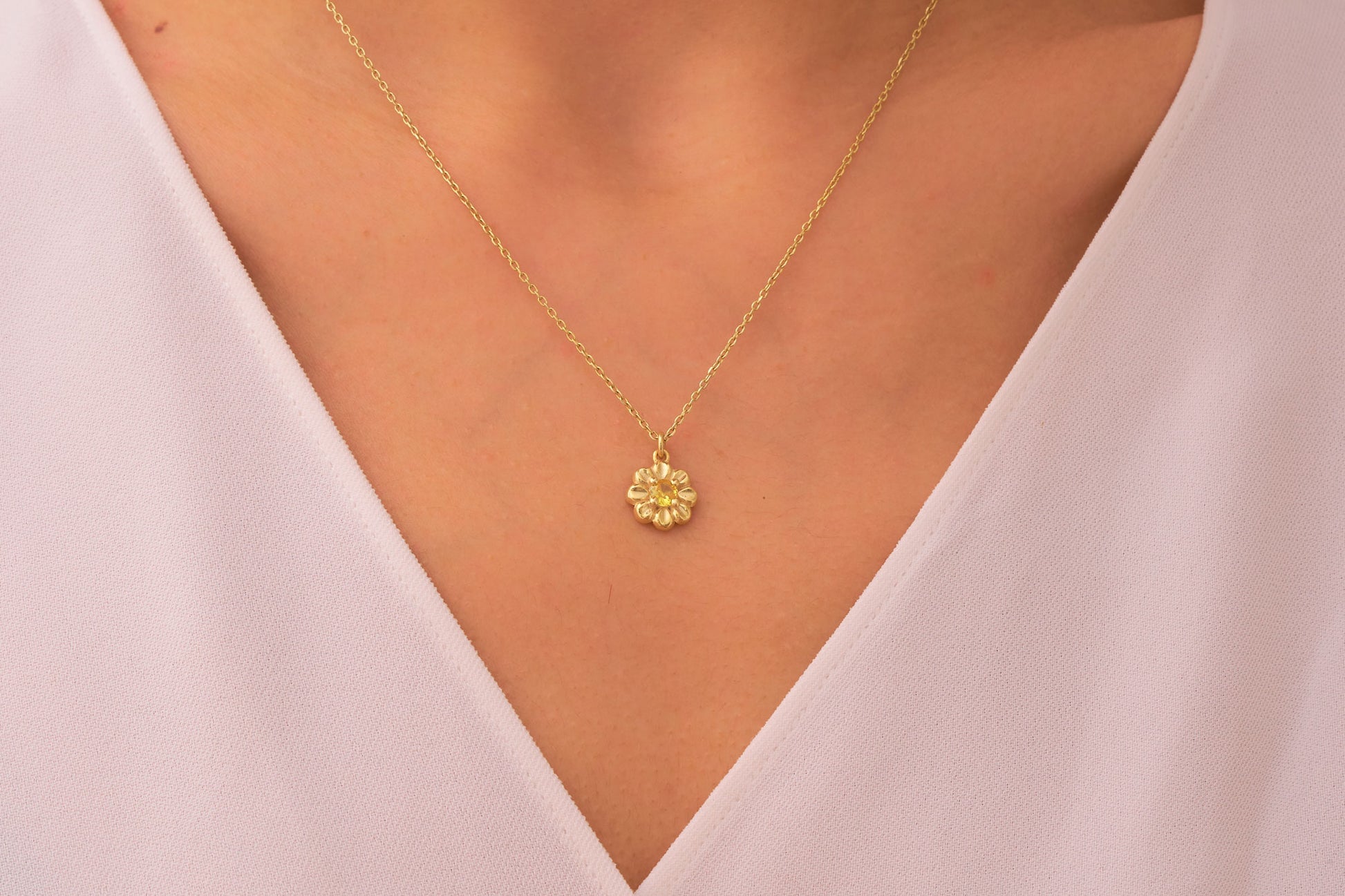 Dainty Daisy Flower Necklace with Citrine Stone: Nature Inspired Jewelry in Silver & Solid Gold