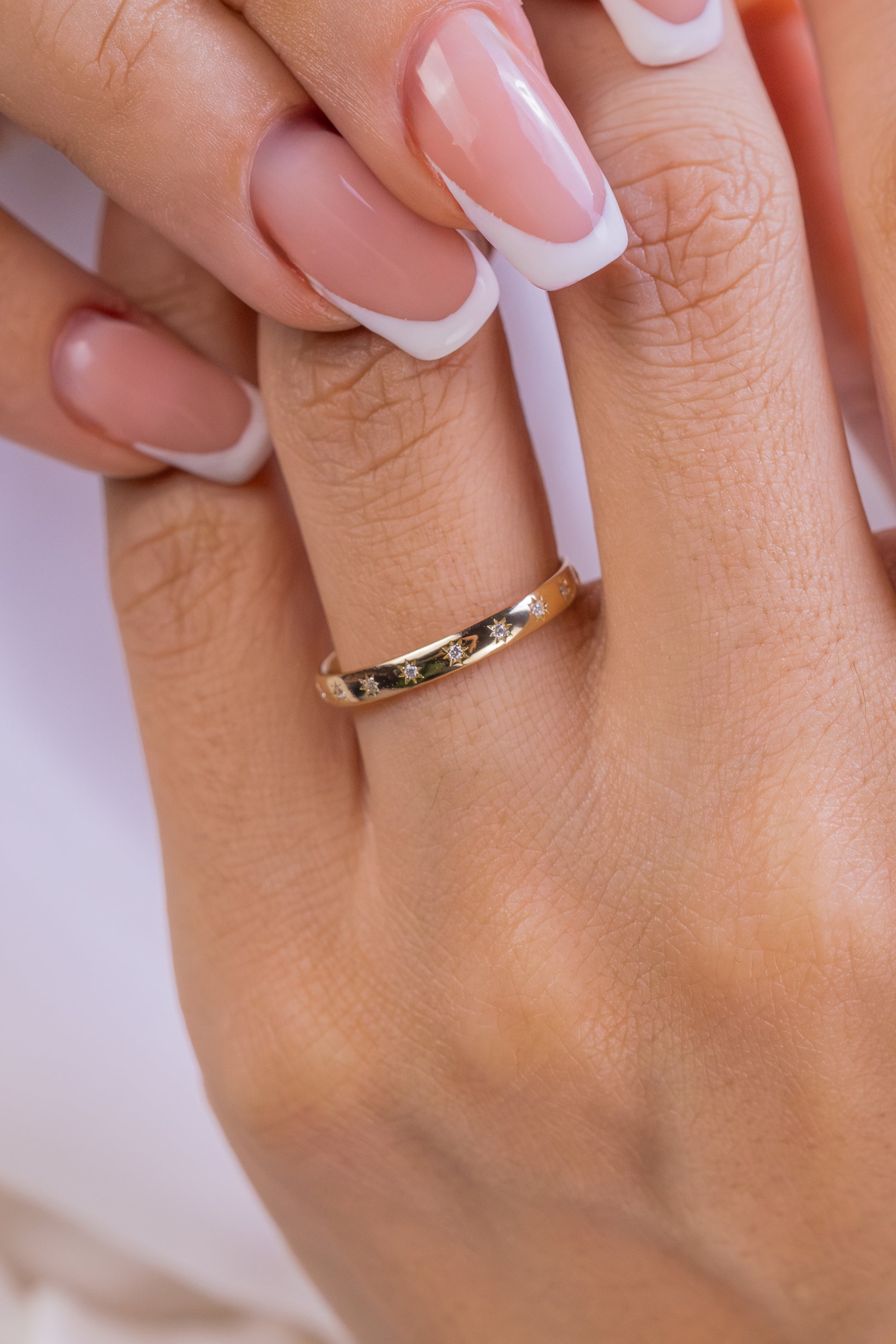 Gold Star Band Ring – Vintage Style Dainty Wedding Band