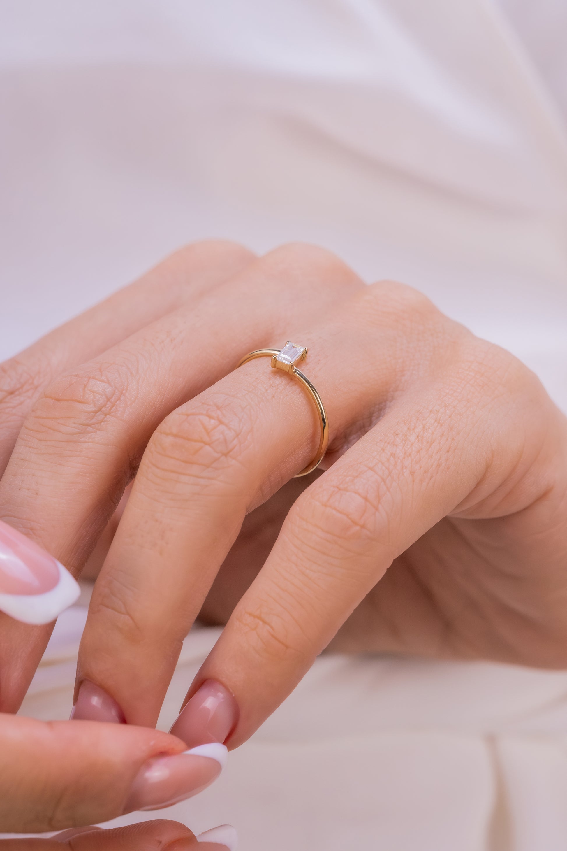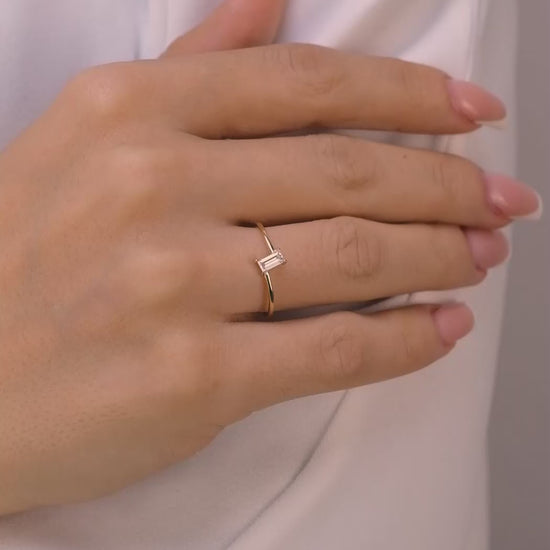 Minimalist Baguette Cut Solitaire Ring – Dainty Gold Stacking Ring