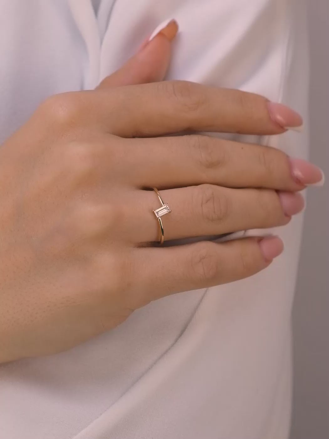 Elevate your style with this minimalist baguette cut solitaire ring, designed for those who appreciate understated elegance. Featuring a delicate baguette-cut gemstone set on a thin gold band, this ring is a timeless piece perfect for everyday wear or as a minimalist engagement ring.
