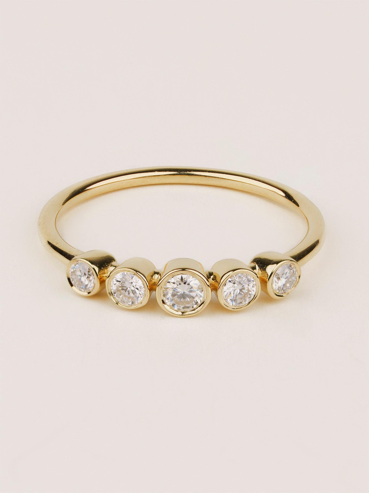 Refined, timeless, and effortlessly elegant, this Gold Bezel Set Diamond Ring is a modern take on classic sophistication. Designed for minimalist jewelry lovers, this ring features five brilliant-cut diamonds in a delicate bezel setting, creating a sleek and contemporary look. Handcrafted in 14K solid gold, this dainty yet eye-catching piece is perfect for stacking, wedding bands, promise rings, or everyday wear. Whether worn alone for a subtle sparkle or layered with other rings, this piece adds a touch of understated luxury to any jewelry collection.