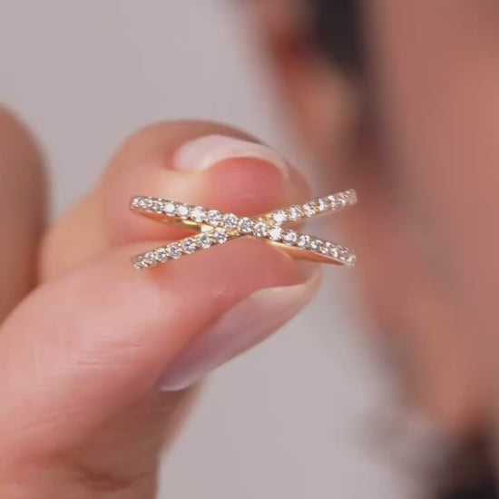 Pave Diamond Engagement Ring: Intertwined Band Promise Ring for Her Available in Silver & Gold Options