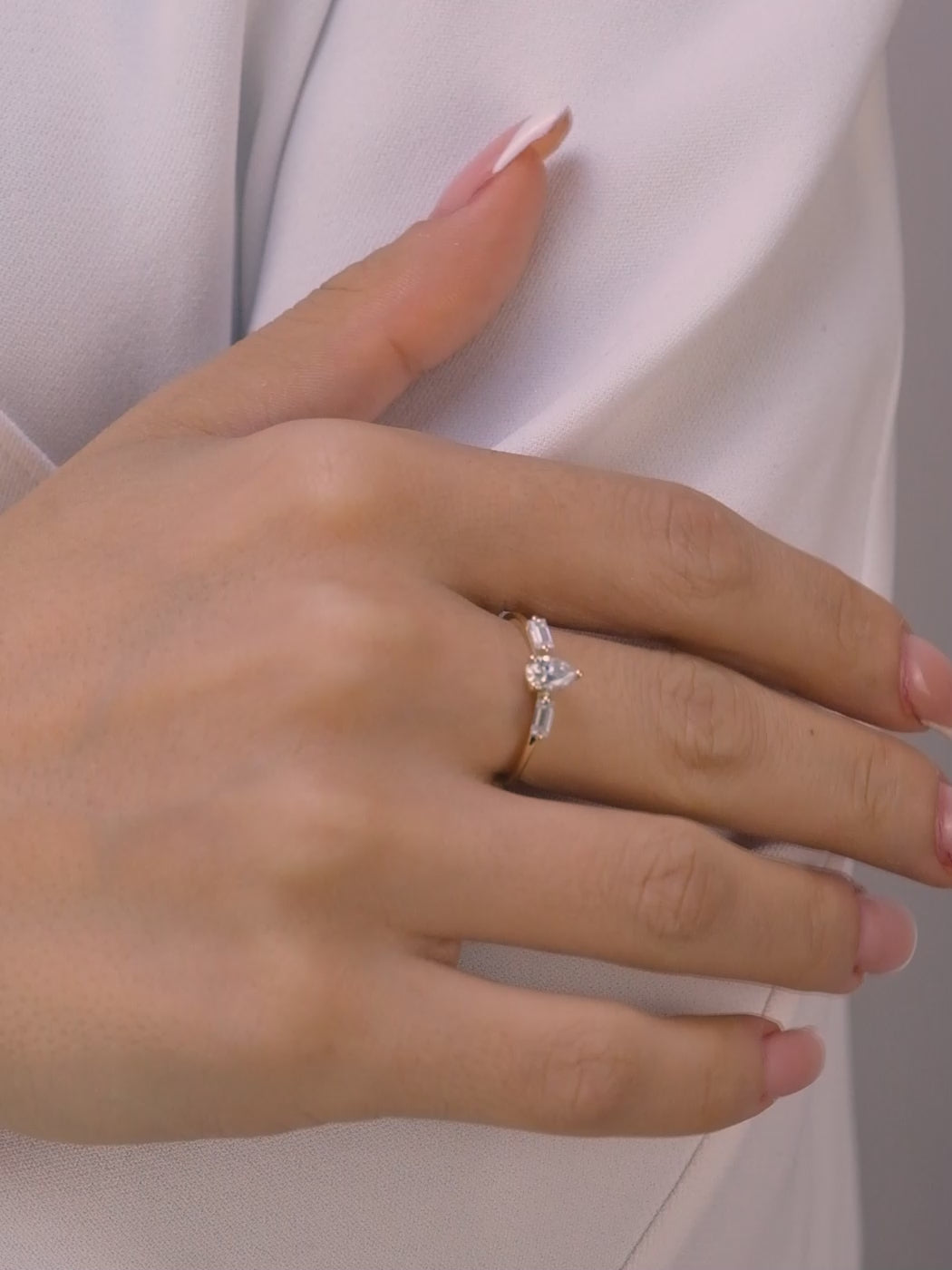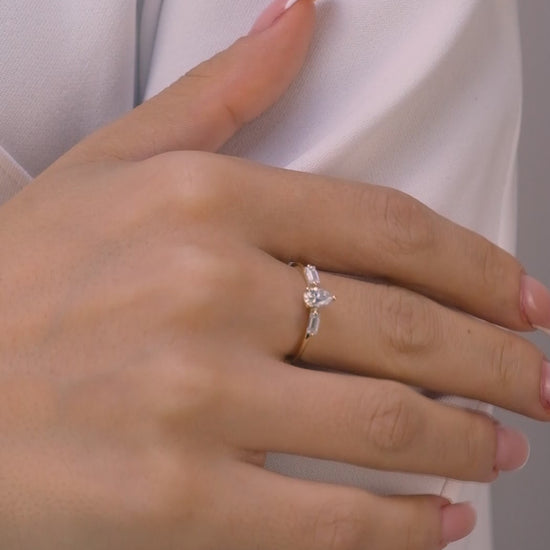 Pear Cut Baguette Moissanite Ring – 14K Gold Dainty Engagement Ring