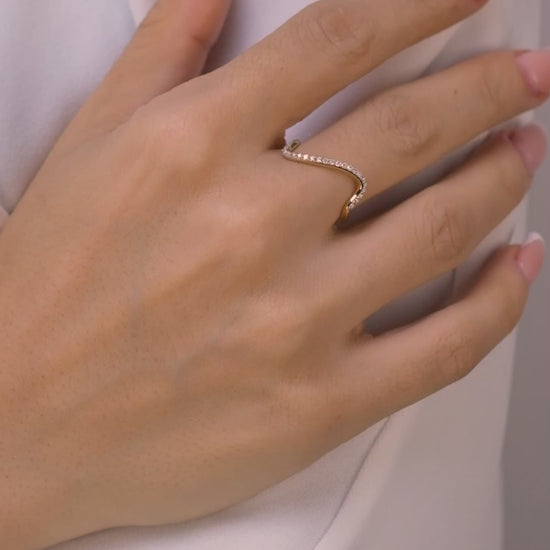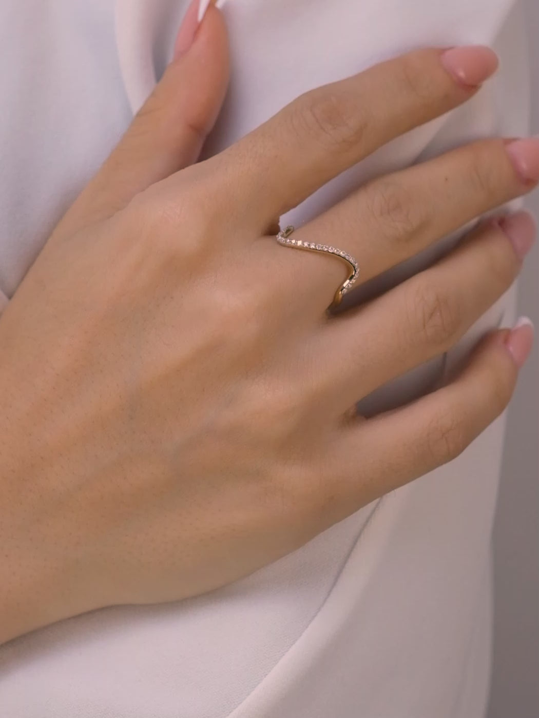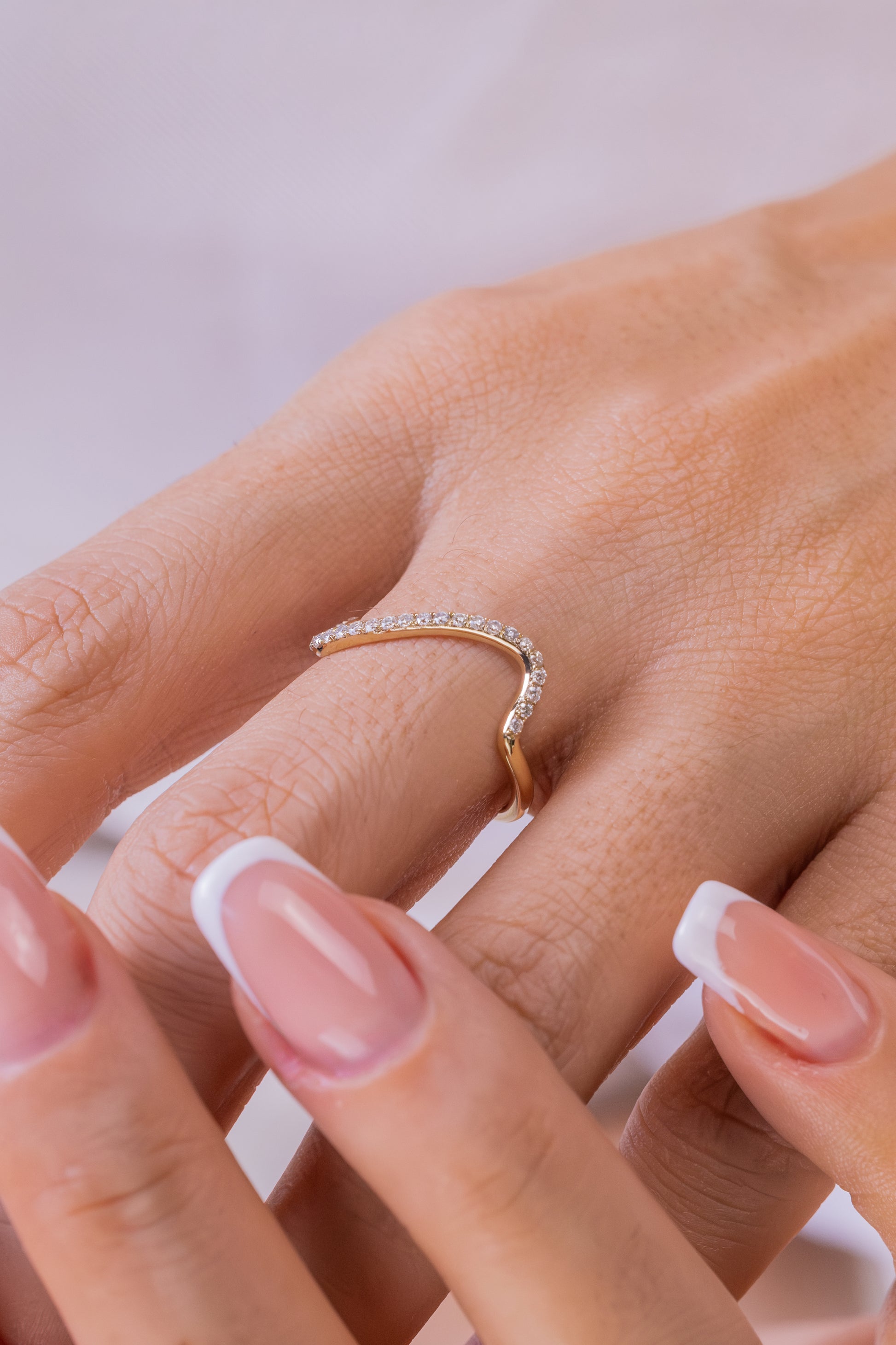 Wavy Pave 14k Gold Ring β Dainty Curved Moissanite Band