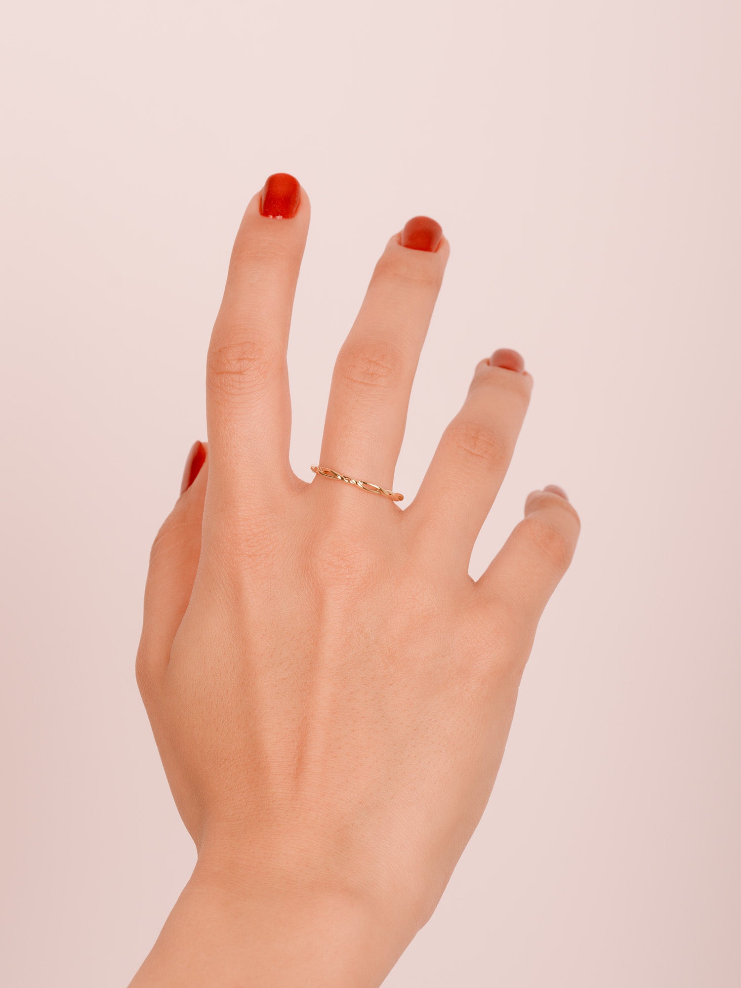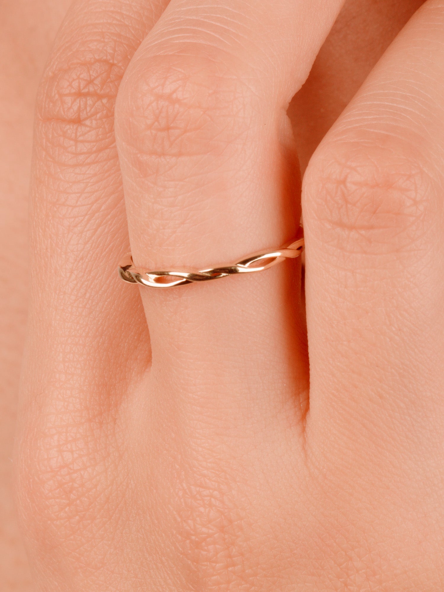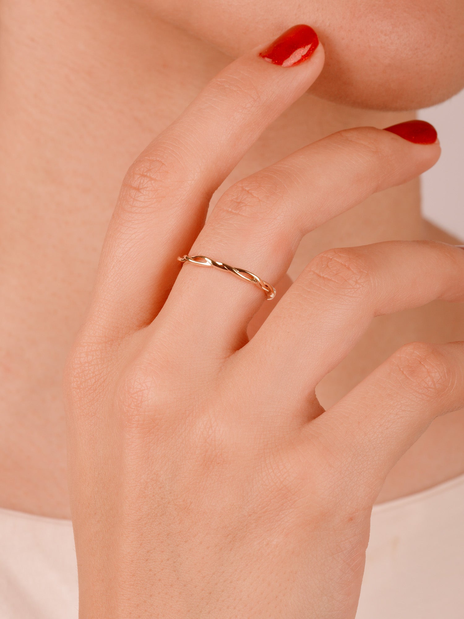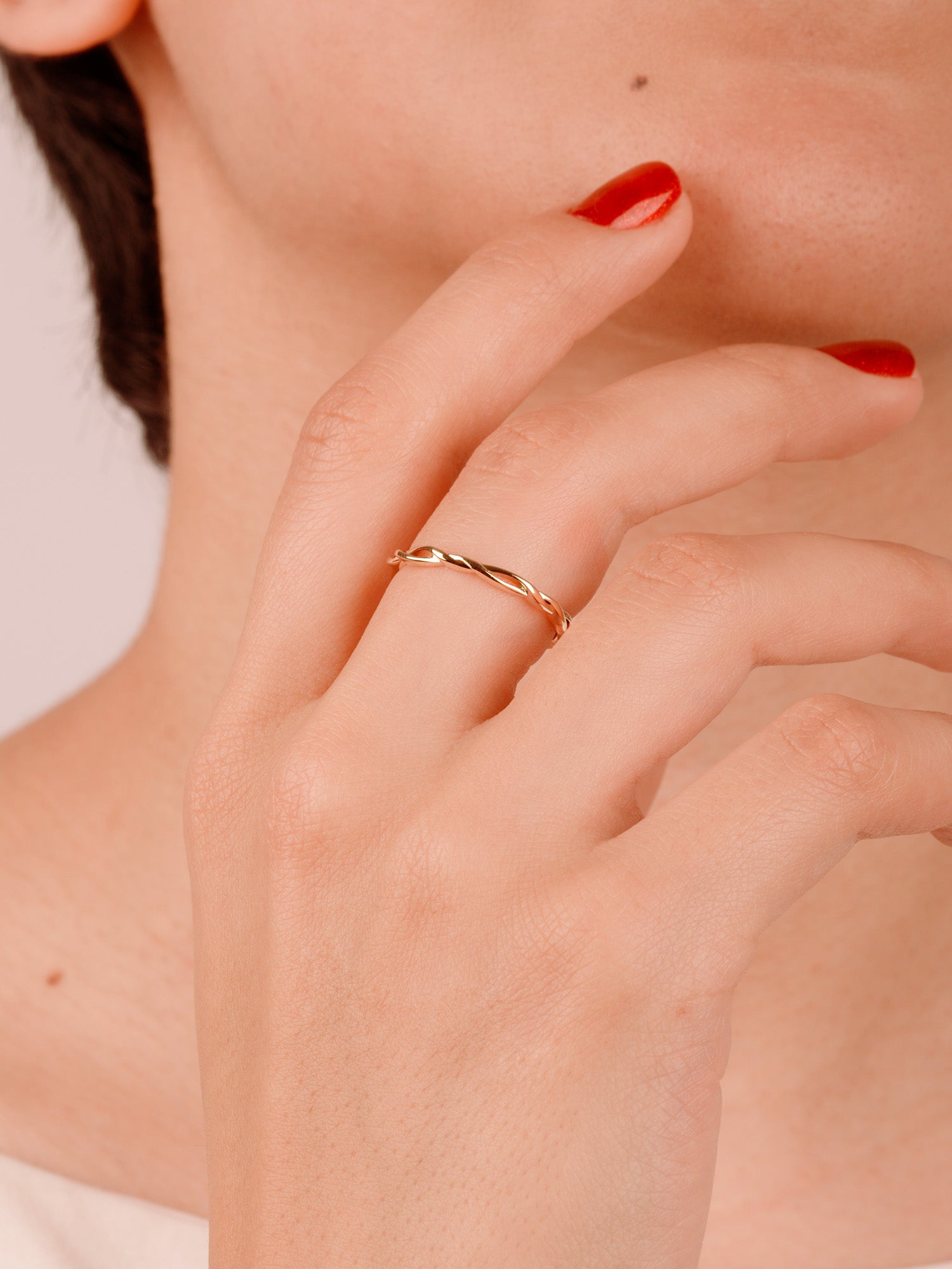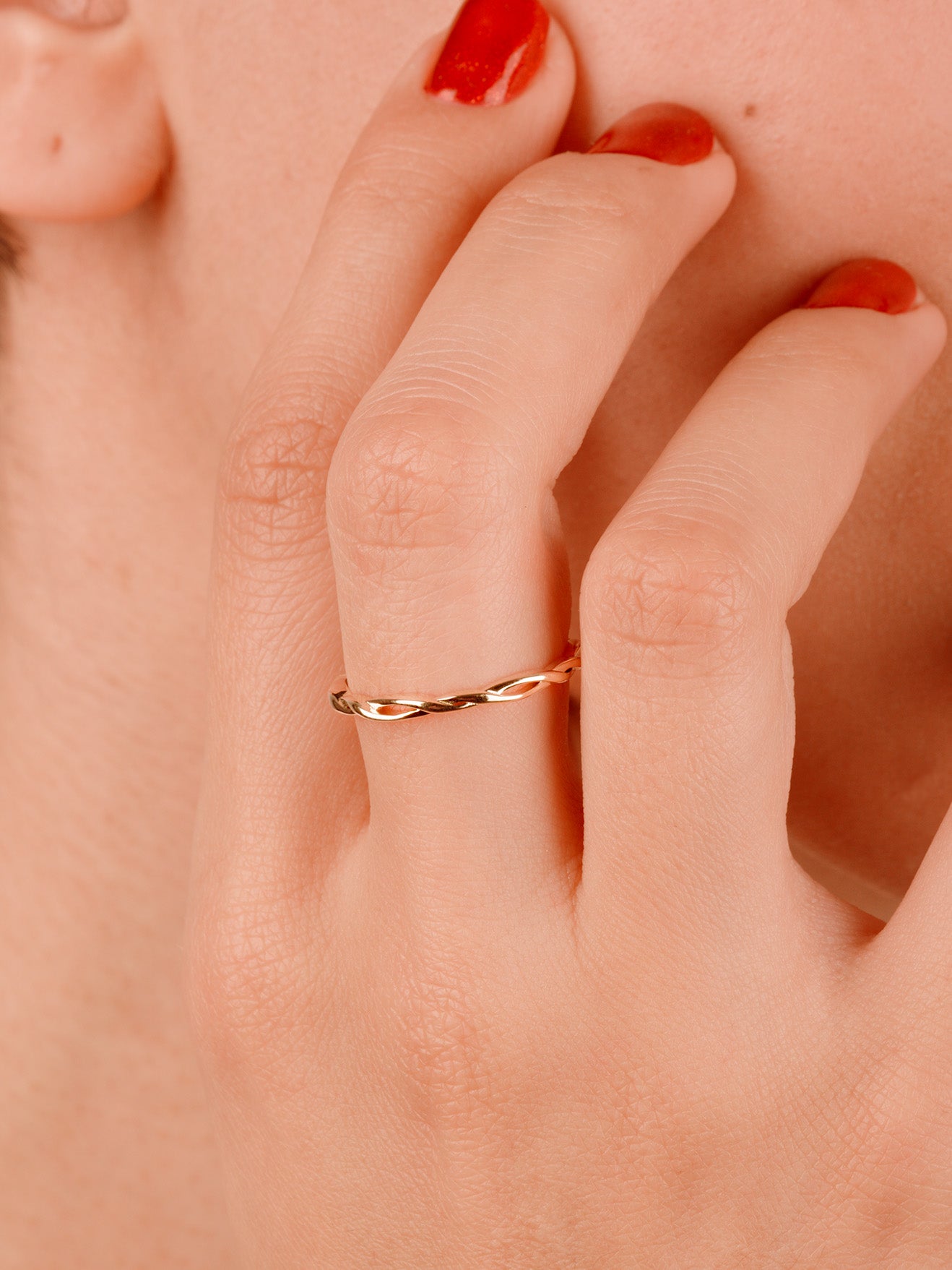 14 Ayar Altın Büküm Yüzük – Minimalist Örgülü Bant