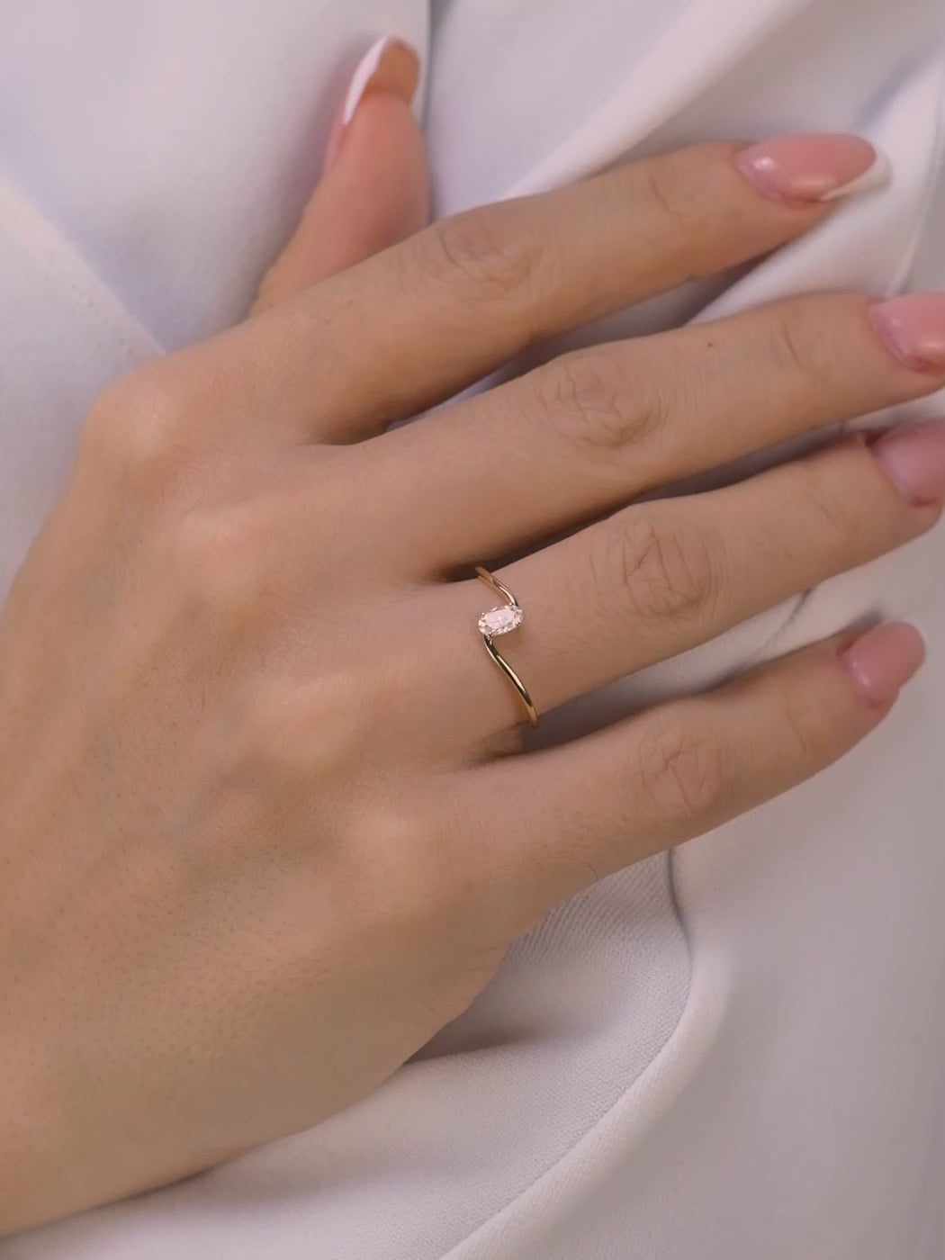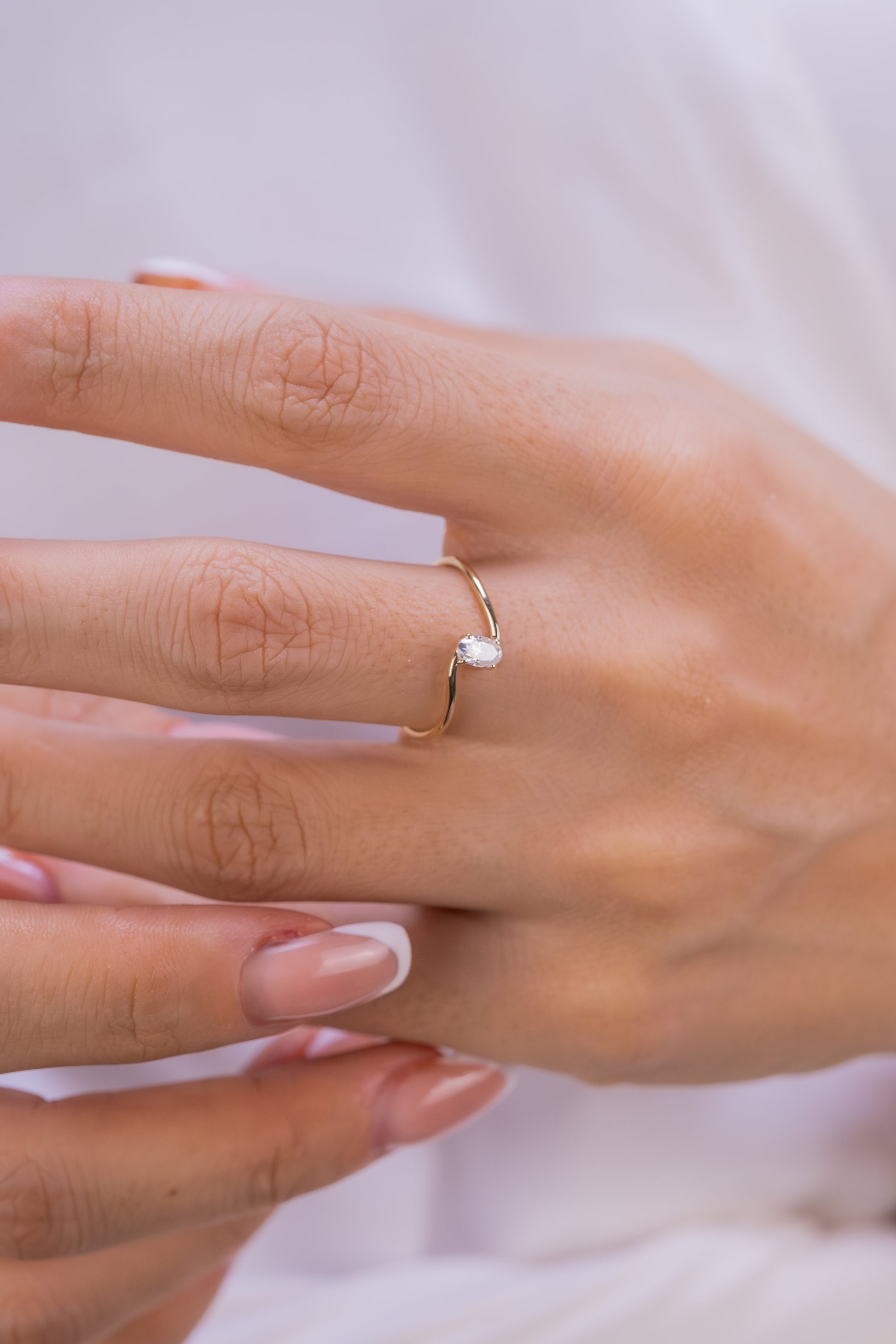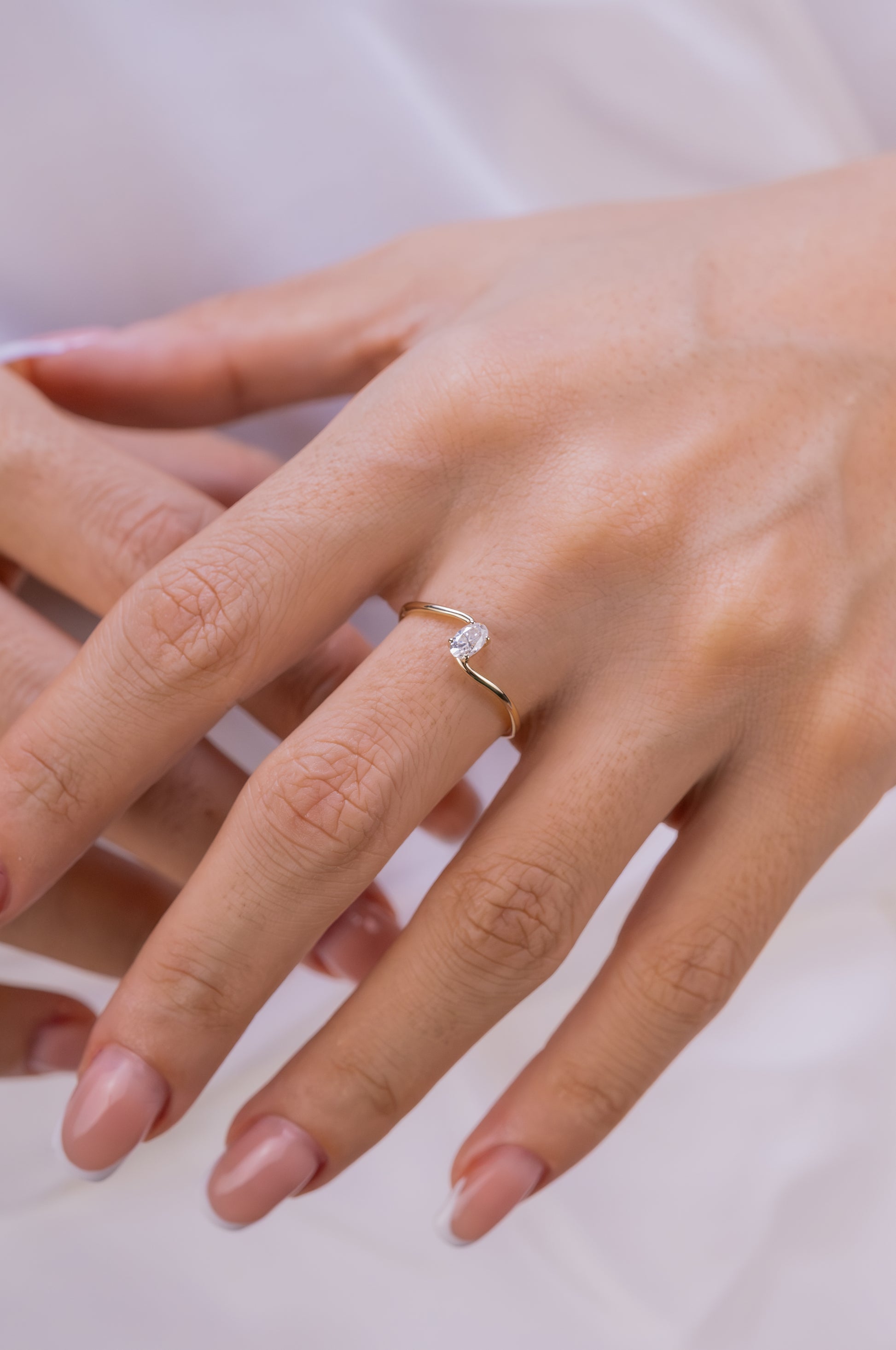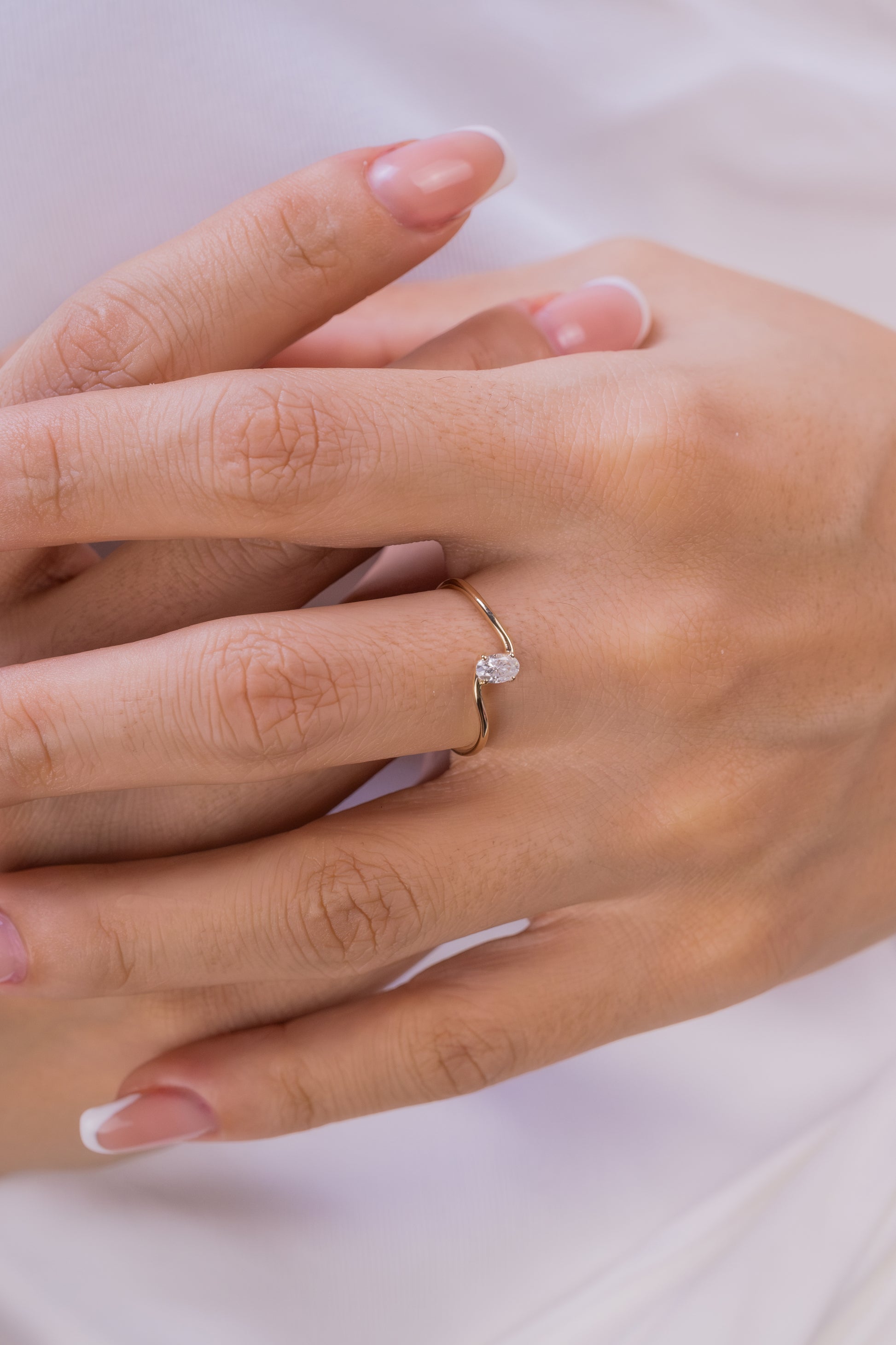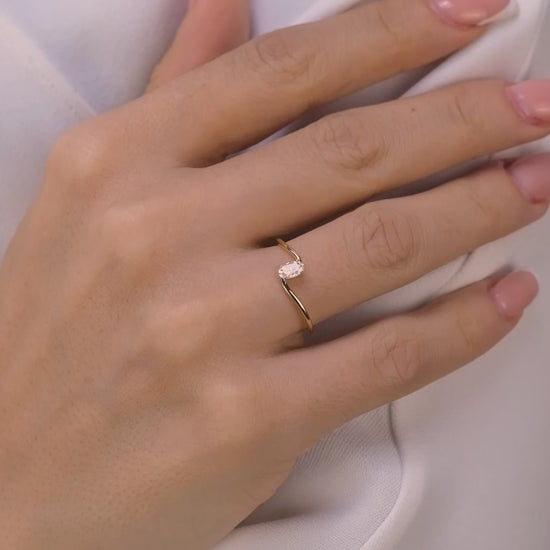 Oval Kesim Minimalist Tektaş Yüzük – 14 Ayar Altın Dalgalı Tasarım Yüzük