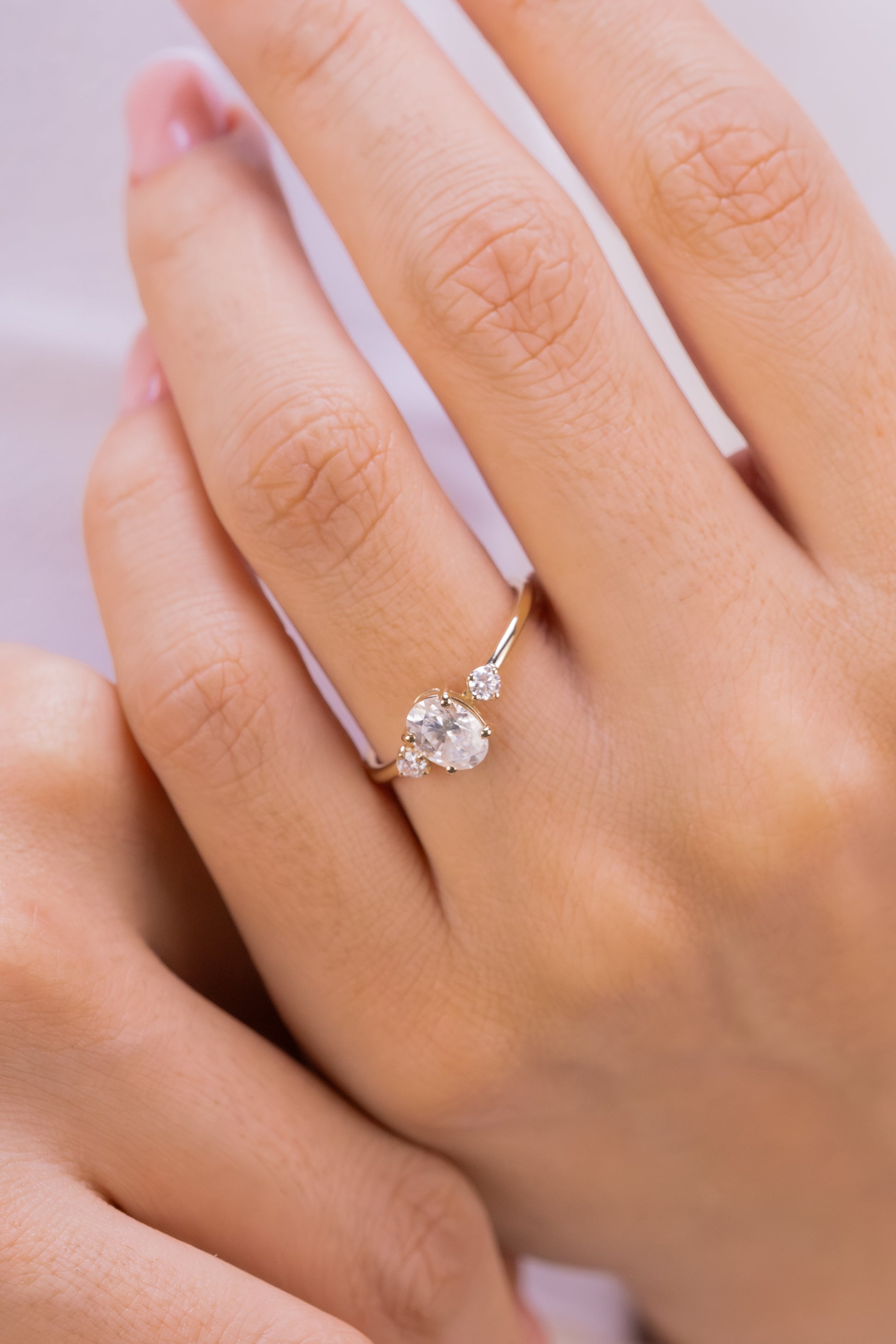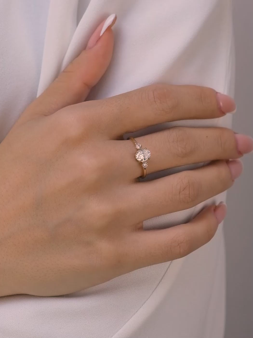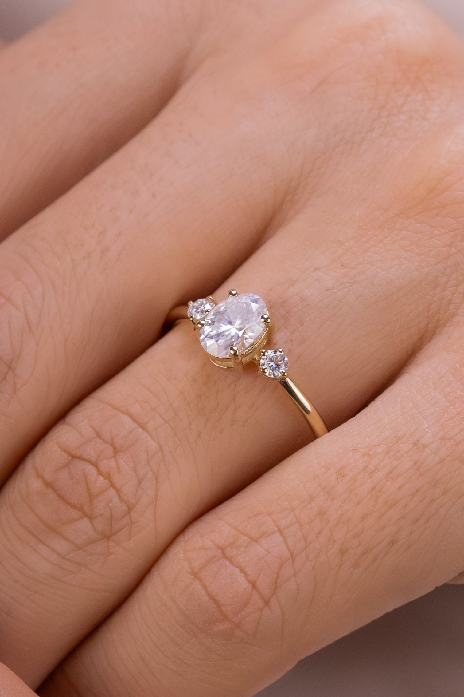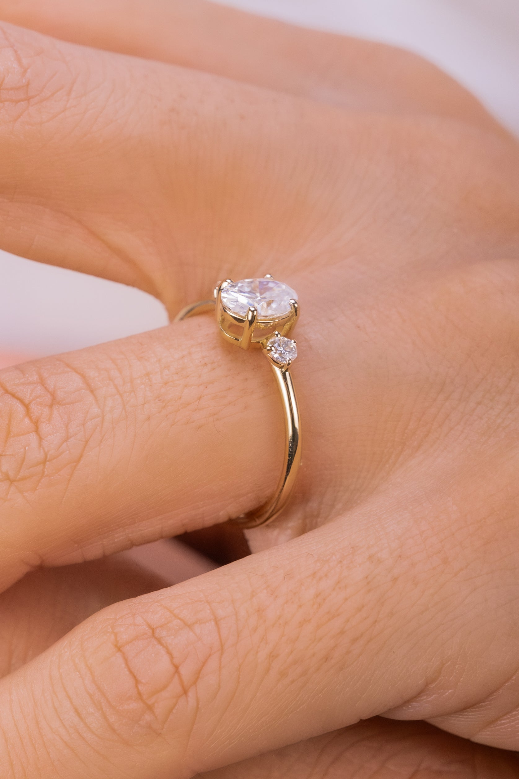 Oval Kesim Üç Taşlı Altın Yüzük – Zarif Minimalist Nişan Yüzüğü