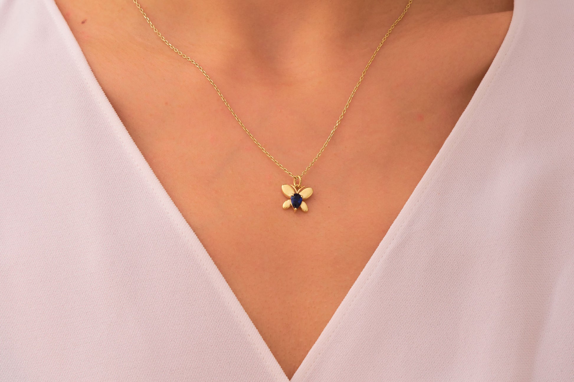 Sapphire Butterfly Necklace: Silver & Solid Gold Options Unique Gemstone Butterfly Jewelry